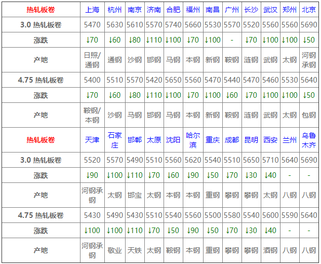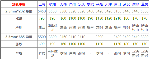 今全國帶鋼主流下行,華北主導鋼廠降50-70,唐山窄帶累降70,降后仍無明顯好轉,僅個別可,華東華南下行調整,交投氛圍不佳;