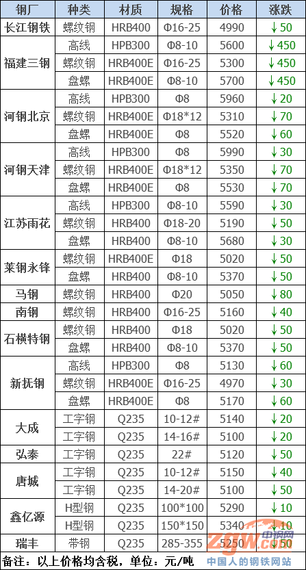 2021年8月9日鋼廠調價通知::大跌400!27家鋼廠最新調價!2021年08月09日