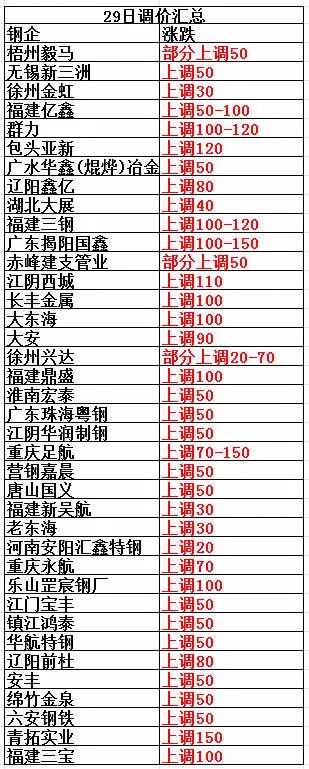 5月29日無錫新三洲特鋼上調50:鋼板10以上3400,模具鋼3340,重廢一級3240,二級3150,馬蹄鐵6以上3240,6以下3180,熱沖子3450,鋼筋切頭3530,冷沖一級3400,二級3340,瓜子片3430,破碎料一3100,不含稅。