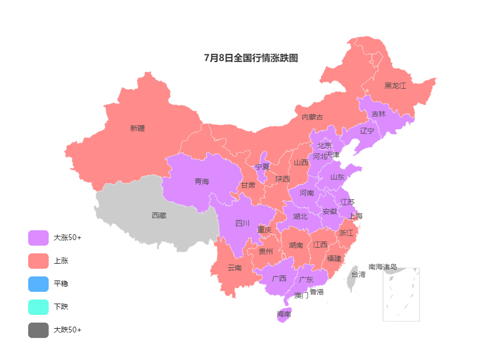 7月8日鋼鐵價格漲跌圖:主流上漲