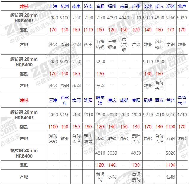 今建材價格上行為主,幅度20-100,期貨價格快速拉漲,市場投機性需求增加,部分商家微調鋼廠資源價格,貿易商整體心態謹慎樂觀,預計短期價格窄幅震蕩趨強運行;