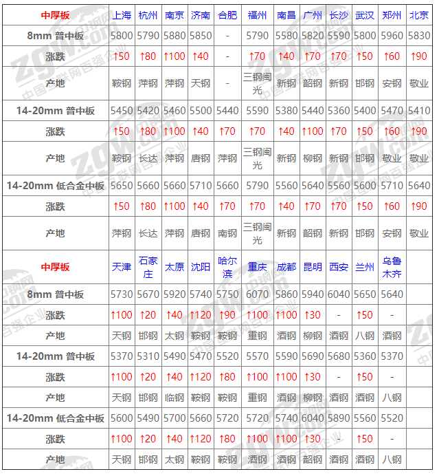 今全國中板整體上行,幅度20-120左右,期貨持紅震蕩,成交表現一般,部分商家實單成交有優惠,市場高位情緒較謹慎;