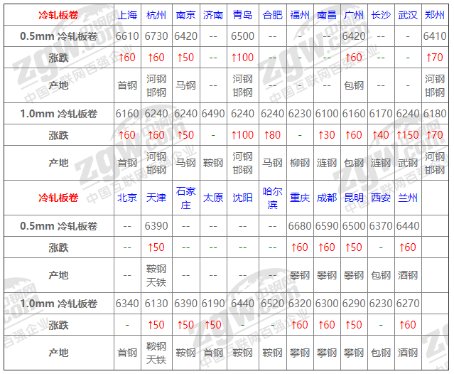 今全國冷軋偏強調整,幅度30-100,期貨高位回落,市場成交不一,短期市場強勢拉漲,但實際優惠出貨較多;