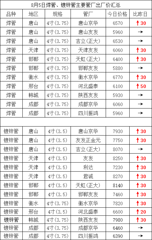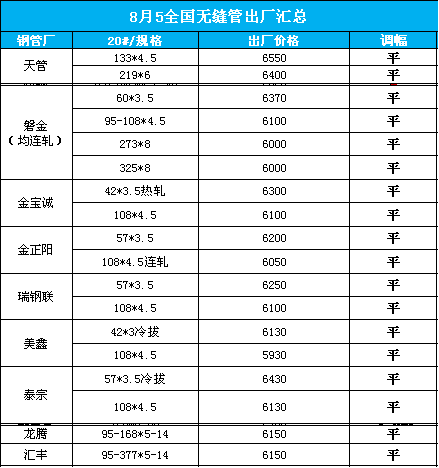 【鋼廠重磅】8月6號鋼廠部分產品出廠價格及鋼廠廢鋼價格調整信息