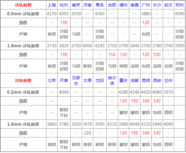 5月9日冷軋板卷價(jià)格:高位震蕩; 今日冷軋板卷價(jià)格上調(diào),近日期貨盤面偏強(qiáng)運(yùn)行,給低迷已久的市場(chǎng)帶來(lái)不小提振; 另一方面,五一節(jié)后需求有所釋放,下游采購(gòu)積極性提高,商家成交高達(dá)節(jié)前兩倍,價(jià)格也紛紛上調(diào)以減少虧損。 心態(tài)方面,隨著兩會(huì)即將在22日召開,按往年會(huì)議前后一周鋼材市場(chǎng)行情大概率上漲,宏觀面刺激利好,商家心態(tài)較為樂(lè)觀。 庫(kù)存方面,整體庫(kù)存壓力仍存在,還需要消化一段時(shí)間。