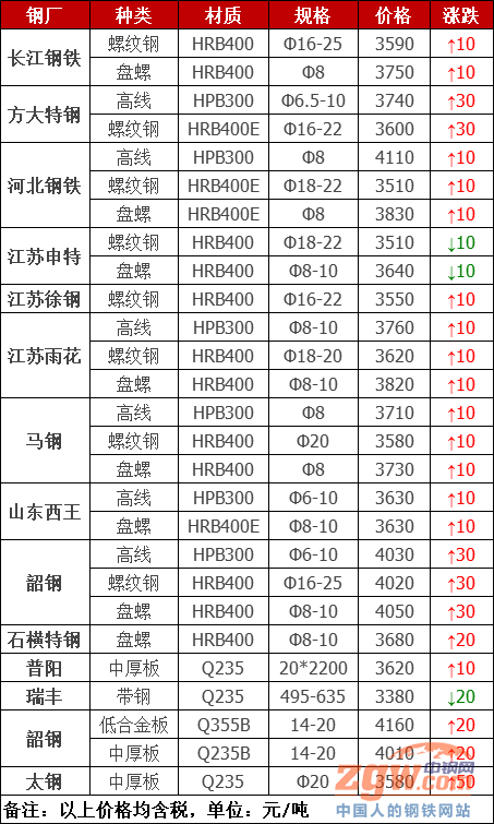 調(diào)價(jià):價(jià)格有變!32家鋼廠最新調(diào)價(jià)