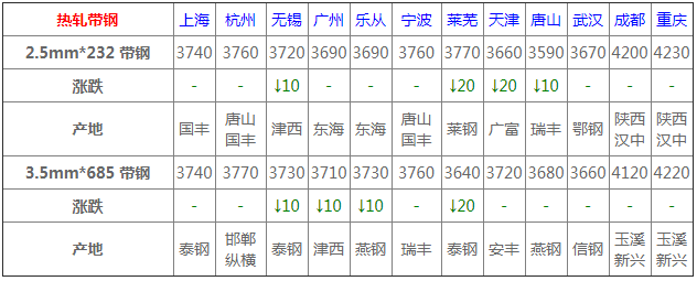統(tǒng)計(jì)的35家鋼廠調(diào)價(jià)中,漲幅最高為瑞豐帶鋼,調(diào)價(jià)幅度40元/噸,跌幅最大為山東傳洋型材,調(diào)價(jià)幅度20元/噸,具體調(diào)價(jià)明細(xì)如下: